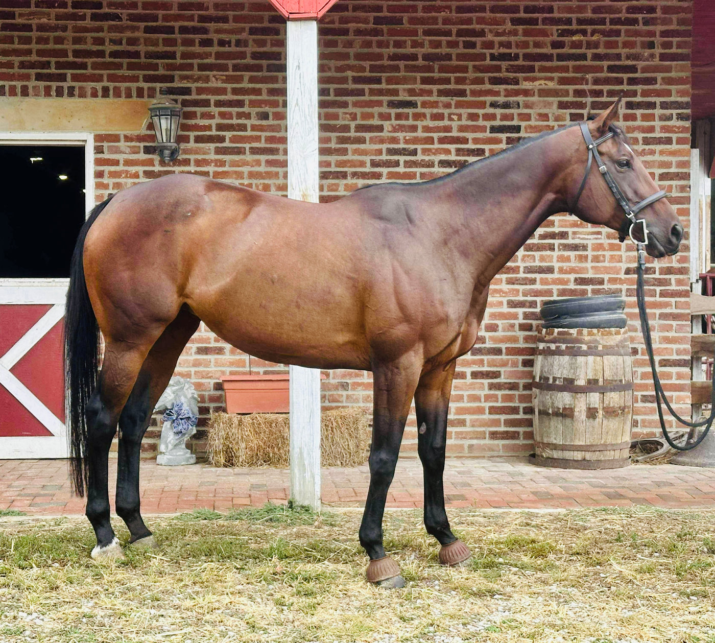 My Dams Atitude, affectionately called Addy in the barn is a little bit of sweet and spicy rolled into a beautiful package.  With an impressive racing career and exceptional blood lines, this girl will make someone a proud horse owner!  Addy has had some let down time and is working on her ground work with one of our head English trainers.  Videos will be coming soon to show off her journey in retraining.